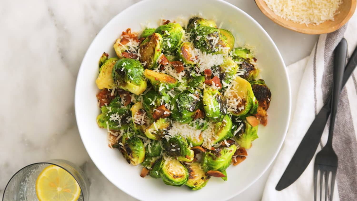 Serve the soup with the crispy bacon and chestnuts on top. Hadn't eaten brussel sprouts since i was a child and i recall disliking them. Loaded with bits of crispy bacon and shallots, they're sweet and caramelized and everything you could ask for in a side dish. 2 medium size delicata squash. Blanch brussel sprouts for 4 minutes then drain and refresh in cold running water.
